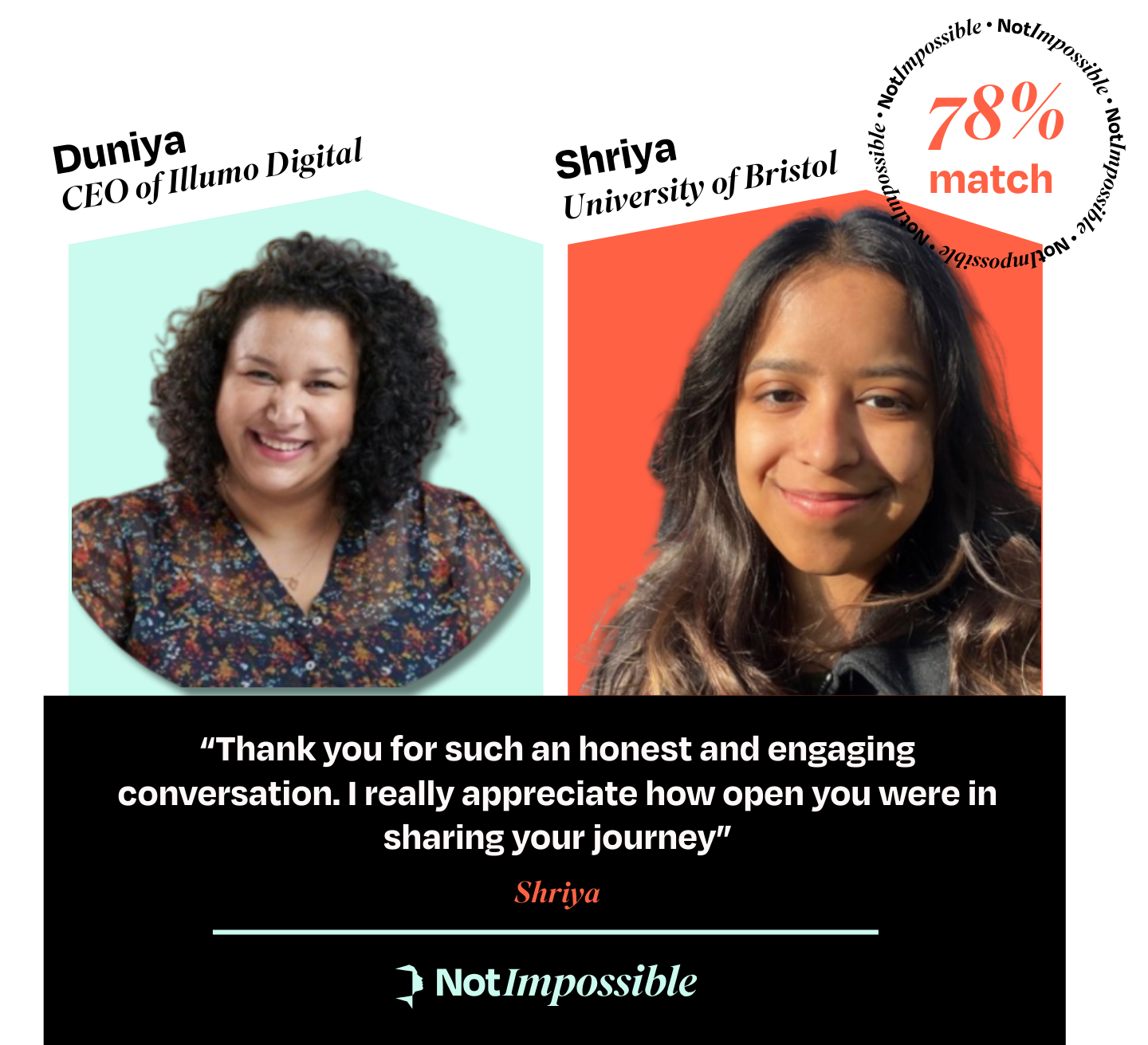 We pair you with one young person based on industry and personality. Pre-screened. Pre-briefed.